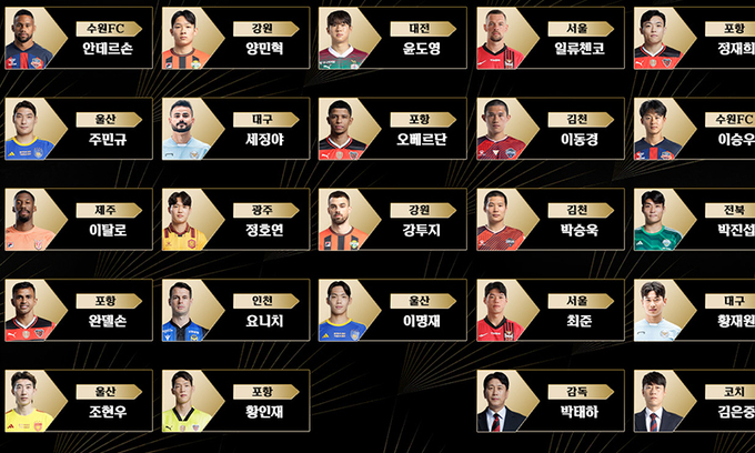 앞서 연맹은 ‘쿠플영플’로 선발된 양민혁(강원)과, 이승우(수원FC), 조현우(울산), 황재원(대구) 등 각 포지션 별 최다 득표를 얻은 ‘팬 일레븐’을 발표했다.