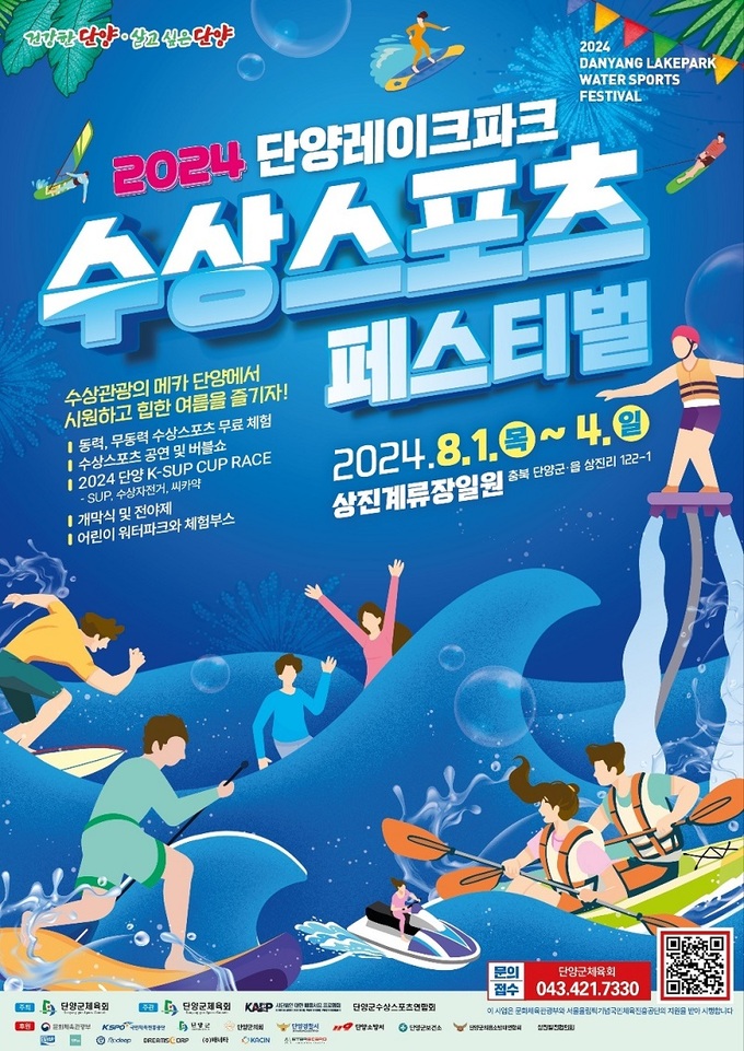 대한패들서프프로협회(KAPP)는 '2024 단양레이크파크 수상스포츠 페스티벌'이 오는 8월 1일부터 4일까지 단양 상진나루 계류장 일원에서 진행된다고 31일 밝혔다.