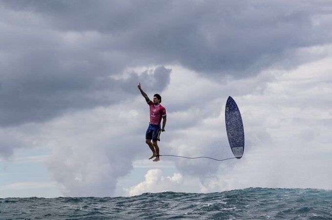 사진은 전날 프랑스령 폴리네시아의 섬 타히티 테아후푸에서 열린 파리 올림픽 남자 서핑 예선 3라운드 경기에 출전한 브라질의 서핑 선수 가브리엘 메디나를 찍은 것이다.