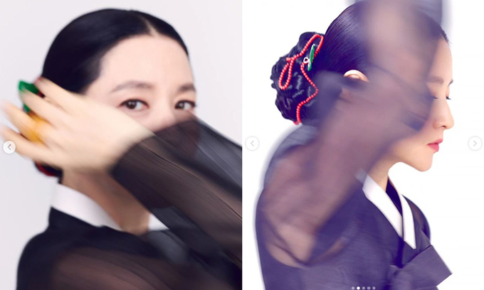 공개된 사진은 그의 한복 화보. 검정색 시스루 저고리와 청록색 치마를 입은 채 포즈를 취한 이영애는 독보적인 우아함을 자랑해 시선을 모은다.