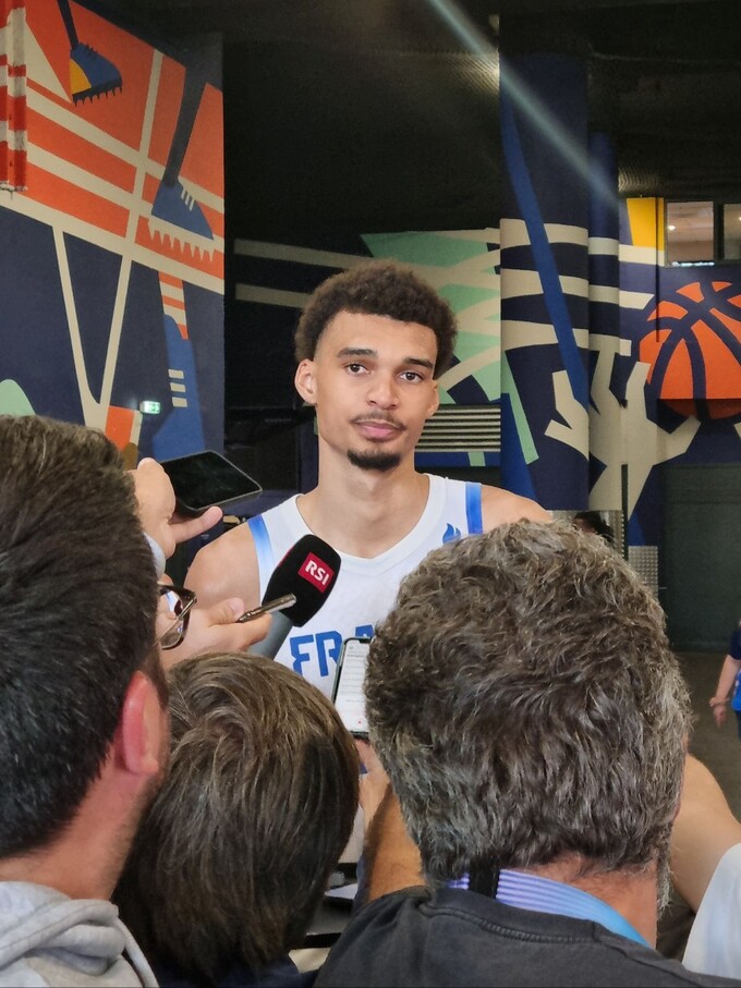 경기 후 공동취재구역(믹스트존)으로 향했다. 프랑스 취재진의 관심은 역시나 웸반야마에게 향했다. 웸반야마는 224㎝의 신장에 95㎏의 신체조건을 가졌다. 전 세계에서 가장 농구를 잘하고 신체조건이 뛰어난 선수들이 모인다는 NBA에서도 웸반야마는 눈길을 끈다. 지난 시즌 NBA에서 만장일치 신인왕에 오르기도 했다. 프랑스 취재진에게는 드림팀 못지않은 취재 열기를 보였다.