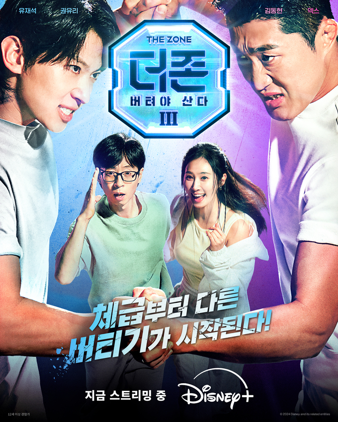한편, 디즈니+의 오리지널 예능 ‘더 존: 버텨야 산다 시즌3’는 오직 4시간, 극한의 현실 공감 미션을 버티기 위해 더 강력하게 돌아온 ‘존버즈’ 유재석, 권유리, 김동현, 덱스의 ‘도파민 ON’ 버라이어티로서 지금 바로 디즈니+에서 만나볼 수 있다.
