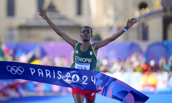 타미랏 톨라(에티오피아)가 올림픽 신기록을 세우며 2024 파리 올림픽 남자 마라톤 정상에 올랐다.