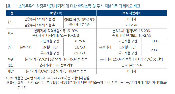 이예지 국회입법조사처 조사관은 “‘소득이 있는 곳에 세금이 있다’는 과세원칙을 구현하고 과세형평성을 제고하며 글로벌 스탠다드와의 정합성을 고려해야 한다”며 “주식의 보유 및 양도단계에서 발생하는 배당소득 및 자본이득을 함께 고려한 합리적인 개선방안을 강구할 필요가 있다”고 말했다.