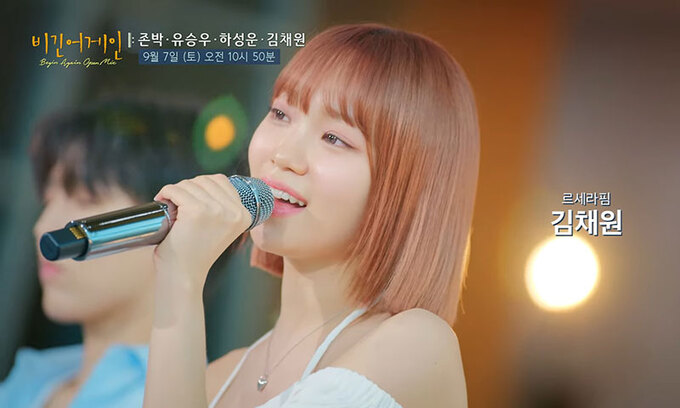 김채원은 JTBC 음악 예능 ‘비긴어게인 오픈마이크’에서 전라남도 나주 버스킹 공연을 펼친다. 지난 26일 공개된 티저에서 S.E.S ‘Just A Feeling’, 알렌 워커(Alan Walker)의 ‘On My Way’를 부르는 장면이 일부 공개됐고, 김채원의 청아한 음색과 호소력 있는 보컬이 짙은 여운을 남겼다. 본 방송에서는 김채원 솔로곡은 물론 존박, 유승우, 하성운 등 선배 아티스트들과의 듀엣 무대도 만날 수 있을 것으로 기대된다. 김채원의 출연분은 9월 2일 유튜브에서 선공개되고 9월 7일 오전 10시 50분 JTBC 채널에서 방송된다.