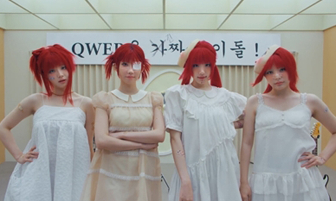 QWER(쵸단, 마젠타, 히나, 시연)은 지난달 30일과 31일 공식 유튜브 채널에 신곡 '가짜 아이돌'의 뮤직비디오 티저를 게재했다.
