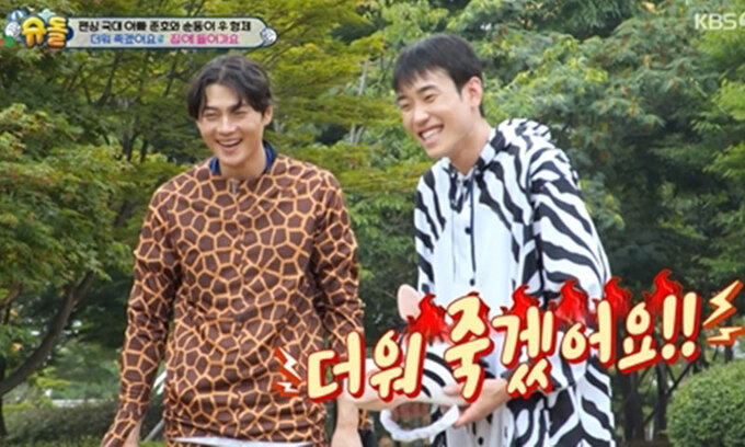 이날 ‘우형제’ 은우-정우를 위해 오상욱은 2미터가 넘는 기린 삼촌을 재소환했고, 도경동은 얼룩말로 변신해 눈길을 끌었다. 은우는 기린 탈을 쓴 오상욱을 발견하자, “아빠, 안아줘”라며 뒷걸음질쳤고, 정우는 “기린이야”라며 다가갔다. 도경동은 사족보행 포즈로 얼룩말 흉내를 내 웃음을 안겼다. 김준호는 “누가 이런 분장에 금메달을 메고 나와”라며 금메달리스트도 예외 없는 육아 현장에 폭소를 터뜨렸다.