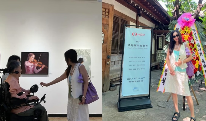 4일 황신혜는 자신의 SNS를 통해 “구족화가전시회 다녀왔어요”라고 밝혔다. 구족화가란 팔을 사용하지 못해 입이나 발로 그림을 그리는 화가들을 말한다.