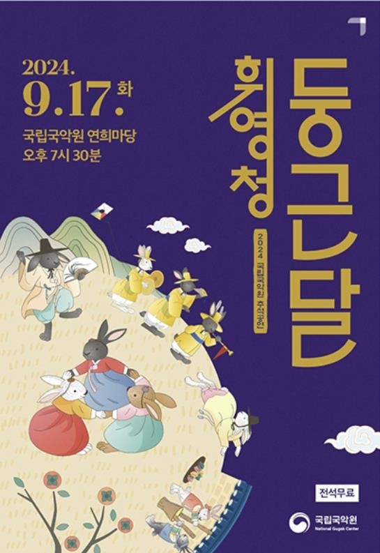 국립국악원은 추석 당일인 17일 서울 서초구 국립국악원 연희마당에서 전통 음악과 춤 무대로 이뤄진 ‘휘영청 둥근달’을 공연한다고 5일 밝혔다. 야외 공연장인 연희마당에서 한가위 보름달을 즐기며 ‘강강술래’와 ‘대취타’ 등 전통 공연을 관람할 수 있다. 공연 시작 전 예악당 앞 잔디마당에서 다양한 민속놀이를 체험할 수도 있다.