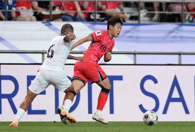 홍명보 감독이 이끄는 축구 대표팀은 5일 서울월드컵경기장에서 팔레스타인과 2026 국제축구연맹(FIFA) 북중미 월드컵 아시아 지역 3차 예선 1차전에서 0-0으로 비겼다. 한 수 아래로 평가받은 팔레스타인을 상대로 아쉬운 결과를 냈다.