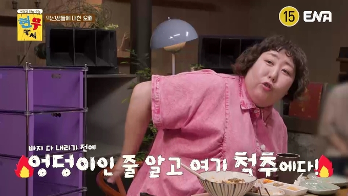전현무는 기름진 살치살로 인해 살짝 느끼해질 때쯤, 편의점 재료로 쉽게 만들 수 있는 ‘저칼로리 평양 누들’을 사이드메뉴로 내놨다. 유민상은 “연결 점수 50점 드린다”며 ‘엄지 척’을 했다. ‘먹선생’들의 놀라운 먹성과 속도에 전현무-김지석은 쉬지 않고 고기를 구웠다. 신기루는 고기를 실컷 먹으면서도 “주사 맞을 때 엉덩이인줄 알고 척추에 주사를 놓더라. 그래서 속옷을 다 내렸다”는 ‘웃픈’ 빅사이즈 에피소드를 들려줘 현장을 초토화시켰다.