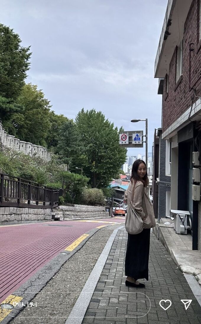 공개된 사진 속 이효리는 편안한 차림으로 동네를 걷는 모습. 서울 성곽이 눈길을 끌어 이효리가 서울 평창동 골목에 있음을 짐작케 했다.