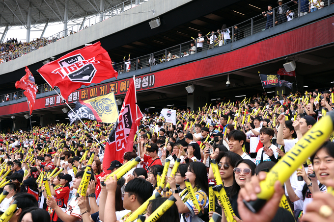 신종코로나바이러스감염증(코로나19) 확산으로 제동이 걸렸던 고난 길을 헤치고, 지난해 810만326명으로 기지개를 켰다. 그리고 올해 거침없이 폭발한다. 하루하루가 새 역사다. 이대로 역대 최초 전 구단 평균 1만 관중 이상, 리그 경기 평균 관중 1만5000명 이상도 겨냥한다.