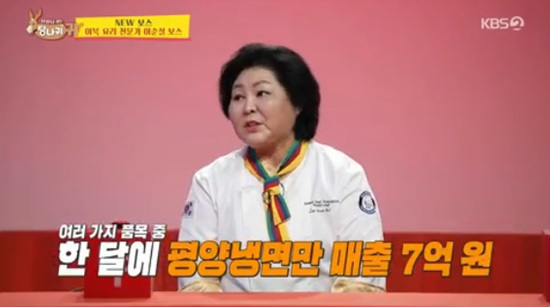 북한 요리 전문가 이순실이 냉면으로만 한달에 7억원 매출을 달성한다고 밝혀 놀라움을 안겼다.