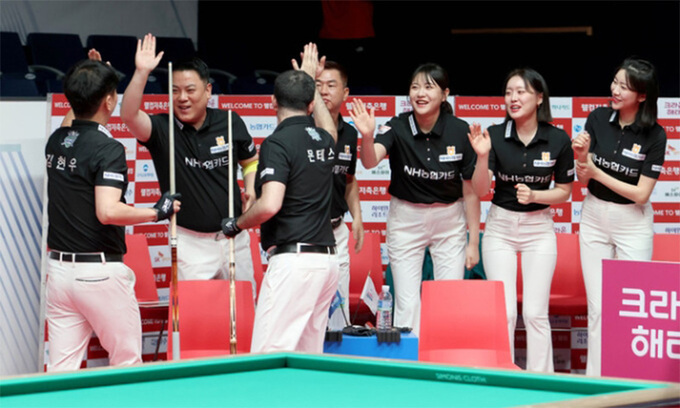 NH농협카드는 5세트서 ‘리더’ 조재호가 서현민을 11-6(8이닝)으로 제압하며 앞서나가기 시작했고, 6세트서 김민아가 김예은을 9-2(5이닝)으로 물리치면서 경기를 세트스코어 4-2 승리로 마무리했다.