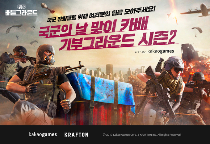 카카오게임즈는 크래프톤 펍지 스튜디오가 개발한 ‘카카오 배틀그라운드’에 국군의 날을 기념해 ‘카배 기부그라운드 이벤트 시즌 2’를 진행한다고 30일 밝혔다.
