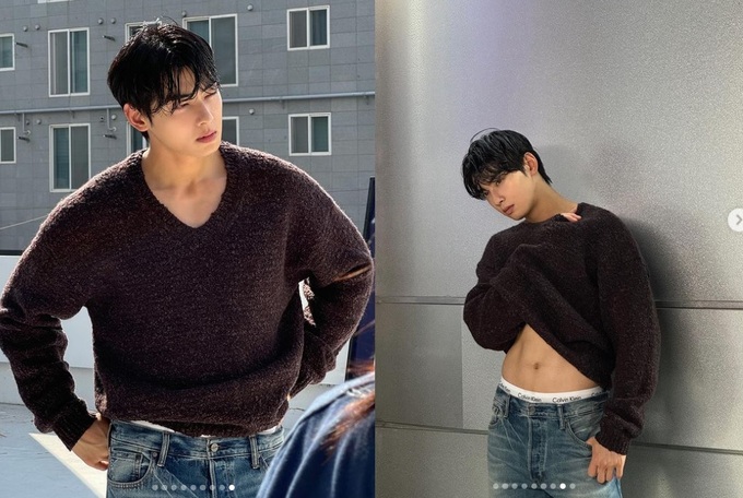 공개된 사진은 그의 촬영 비하인드. 다양한 스타일링을 완벽하게 소화한 차은우는 조각 같은 이목구비를 뽐내 시선을 모으다. 특히 스웨터와 청바지 차림의 차은우는 태평양처 어깨와 초콜릿 복근을 자랑해 여심을 저격했다.