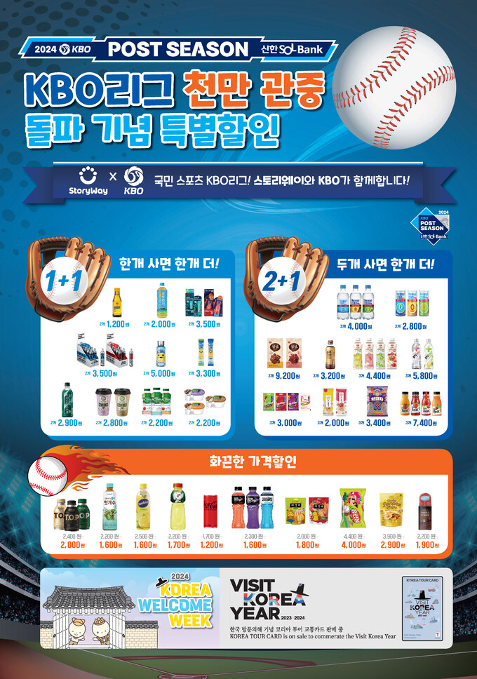 야구팬들은 포스트시즌 전 기간동안 야구 유니폼을 착용하거나, 당일 경기 티켓을 소지한 후 전국 역사 내에 위치한 ‘카페스토리웨이’ 및 ‘트리핀’(용산, 영등포, 수원, 압구정로데오, 부산, 울산, 천안아산, 대전, 익산, 전주, 동대구, 대구 총 12개 역사 입점)에 방문할 경우 음료 2종(아메리카노, 캐모마일)에 한해 30% 할인을 받을 수 있다. 또한, 전국 철도역사에 위치한 편의점 ‘스토리웨이’에서는 KBO리그 천만관중 기념 및 포스트시즌 기간 1+1, 2+1기획상품 및 야구팬들이 선호하는 제품에 대한 할인 판매 혜택을 제공한다.