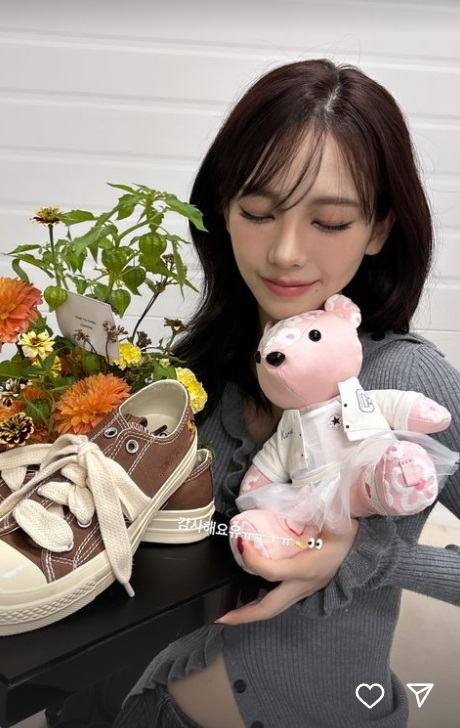 공개된 사진 속 카리나는 꽃다발과 인형을 든 채 미소 지으며 포즈를 취한 모습. 뚜렷한 이목구비를 자랑하며 비현실적인 인형 미모를 뽐내는 그의 모습이 시선을 모은다.