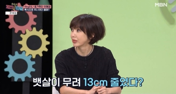 체중감량 후 뱃살이 무려 13cm나 줄었다고. 유혜정은 “가게에서 파는 가장 큰 사이즈인 XL 사이즈 바지를 입었다. 입었을 때도 잘 안 잠겨서 바지 단추를 열어놓고 입을 때도 있었다. 지금은 S 사이즈를 입는다. 허리가 저렇게 많이 준 거다. 5인치 정도 준 것 같다”고 전했다.