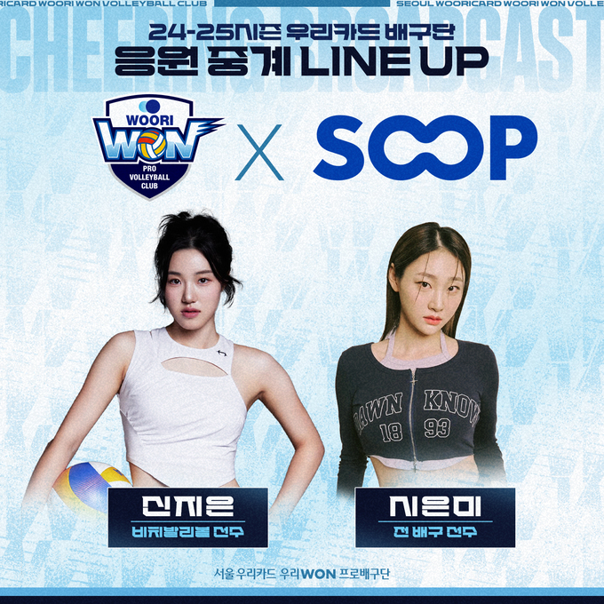 ‘비치발리볼 듀오’ 신지은, 시은미가 진행하는 우리카드 응원 중계는 SOOP 홈페이지 내 ‘우리카드 공식 채널’에서 시청할 수 있다.