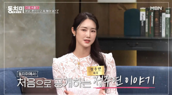 지난 19일 방송된 MBN 예능프로그램 ‘속풀이쇼 동치미’ 방송 말미에는 정주연이 나오는 예고편이 공개됐다.