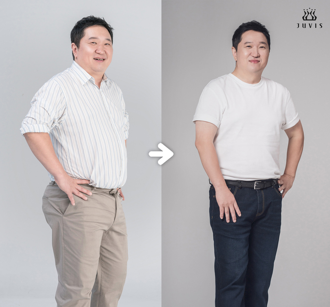 정형돈은 "쥬비스를 시작한 지는 7주가 됐지만 그 사이 2주 동안은 아내와 아이들을 보기 위해 하와이를 다녀왔다. 실제로 관리를 한 건 5주 정도 되는 것 같다"며 "이전에도 다이어트를 개인적으로 많이 해 봤지만 이렇게 누워만 있어도 살이 빠지는 다이어트를 해 본 건 처음이다. 힘들지 않으니까 다이어트를 하는데 스트레스가 없는 게 제일 좋다"라며 관리에 대한 만족감을 전했다.