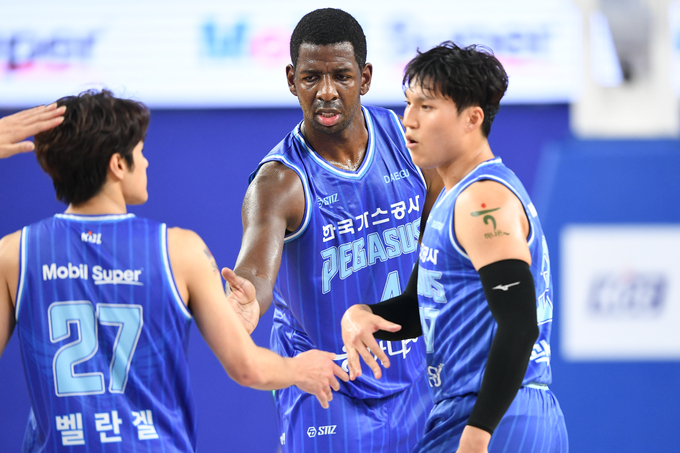 한국가스공사는 올 시즌에 앞서 206㎝의 앤드류 니콜슨과 재계약했고, 211㎝ 장신 유슈 은도예가 새롭게 합류했다. 아시아쿼터인 필리핀 출신 가드 샘 조세프 벨란겔도 잔류하면서 한국 무대 3번째 시즌을 맞이했다. 전력보강도 있었다. 자유계약선수(FA)로 정성우를 데려오면서 김낙현-벨란겔과 함께 ‘3인 가드’ 체제를 완성했다.