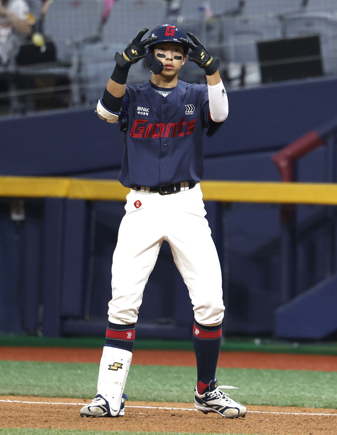 우투좌타 외야수 김민석은 휘문고를 졸업하고 2023년 신인드래프트 1라운드(전체 3순위)로 롯데에 입단했다. 데뷔 시즌인 지난해 129경기에서 타율 0.255(400타수 102안타), 3홈런, 39타점, 53득점을 기록했다. 고졸 신인 데뷔시즌 100안타는 KBO리그 역대 8번째다. 2024시즌 성적은 41경기 타율 0.211(76타수 16안타), 6타점, 14득점이다.