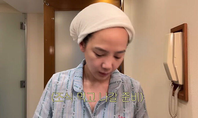 윤승아가 “오빠 오늘 몇 도야?”라고 묻자 남편인 김무열은 “어제랑 똑같대”라고 답했다. 윤승아는 “14도가 최하고 최고가 20도인데 오늘도 덥겠네”라며 화장을 마무리했다. 마지막으로 그는 “여기 호텔 너무 맘에 들어요”라며 화장품 정보를 일부 공유한 다음 “머리를 해보겠습니다”라며 두피 케어에 들어갔다.