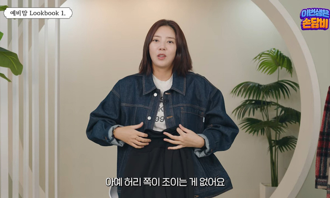 손담비는 “그래서 오늘 약간 청청으로 좀 컨셉을 잡아 봤거든요”라고 전했다. 그는 “여기 딱 보시면 제가 준비를 해 왔습니다”라며 다른 패션도 선보였다. 손담비는 “입어봤더니 정말 편하긴 하더라고요. 왜냐면 쪼이는게 없어요. 아예 허리쪽이. 왜냐면 허리 쪽이 조이면 좀 안 좋으니까”라며 임부복을 소개했다.