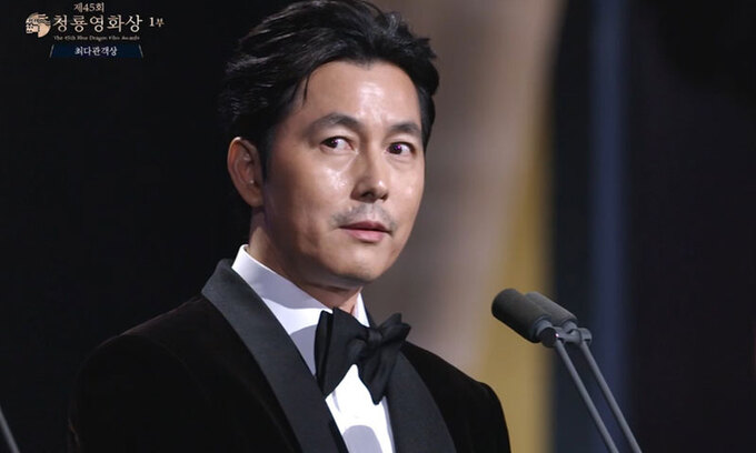 정우성은 29일 오후 서울 여의도 KBS홀에서 열린 '제45회 청룡영화상' 시상식에서 '최다 관객상' 시상자로 무대 위에 올라 "'서울의 봄'을 관람해 주신 모든 관객 여러분에게 감사하다"고 밝혔다.