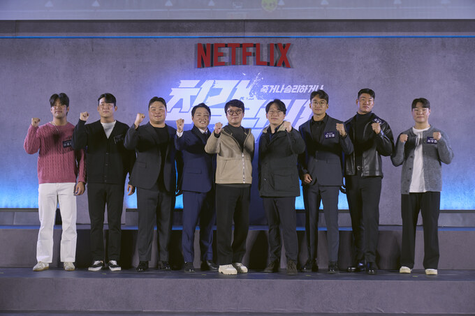 넷플릭스 예능 ‘최강럭비: 죽거나 승리하거나’는 5일 서울 용산구 CGV 용산아이파크몰에서 제작발표회를 진행했다. 현장에는 장시원 PD, 정용검 아나운서와 함께 각 팀의 대표선수 나관영(한국전력공사), 정연식(현대글로비스), 오지명(포스코이앤씨), 이용운(OK 읏맨 럭비단), 김원주(고려대학교), 서우현(연세대학교)이 참석했다.