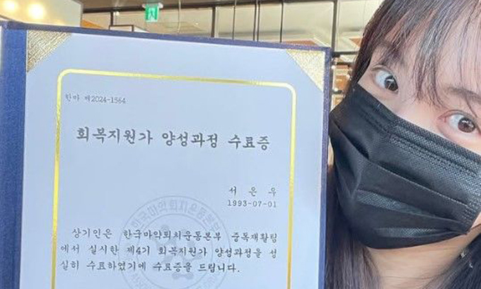공개된 사진 속 서민재는 회복지원가 양성과정 수료증을 든 채 포즈를 취한 모습. 밝은 근황을 전하는 그의 모습이 시선을 모은다.