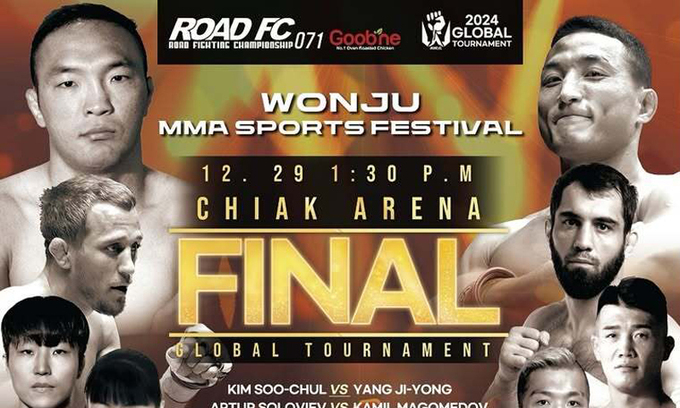 대진표도 화려하다. 로드FC 글로벌 토너먼트 라이트급 결승에서는 아르투르 솔로비예프와 카밀 마고메도프가 맞붙는다. 또 김수철과 양지용의 밴텀급 결승 맞대결을 앞두고 있다. 뿐만 아니라, 임동환과 라인재가 미들급 잠정 챔피언전을 치르고, 박정은과 신유진이 아톰급 타이틀전에서 격돌한다. 원주 MMA 스포츠 페스티벌은 29일 오후 1시 30분부터 원주 치악체육관에서 개최되며 무료로 행사를 관람할 수 있다.