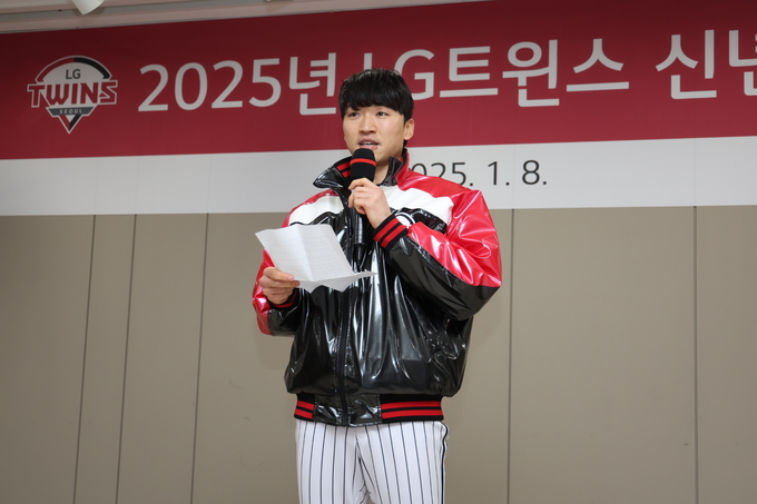 쌍둥이 군단이 프로야구 왕좌 탈환을 위한 여정을 시작한다. LG는 8일 잠실 야구장에서 열린 ‘LG트윈스 2025년 신년인사회’를 열어 올 시즌을 향한 각오를 다졌다. 각각 일본과 미국에서 개인훈련 일정을 보내고 있는 투수 장현식, 정우영을 제외하고 모든 구성원이 한곳에 모였다.