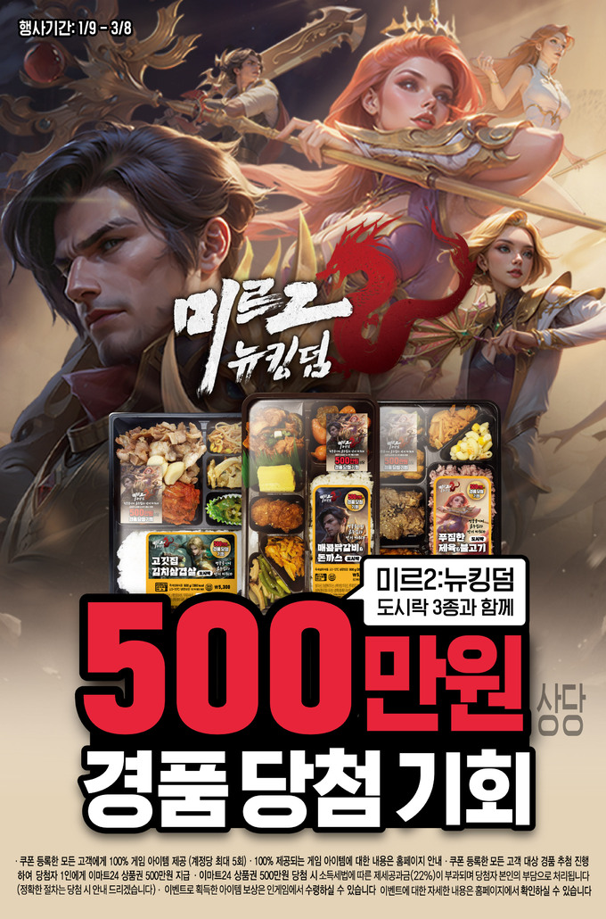 모바일 RPG ‘미르2: 뉴킹덤’이 콜라보레이션한 이마트24 편의점 도시락이 나온다.