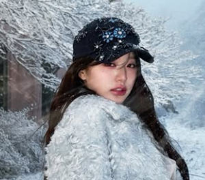 아이브 장원영이 쏟아지는 눈발 사이에서도 빛나는 미모를 뽐냈다.