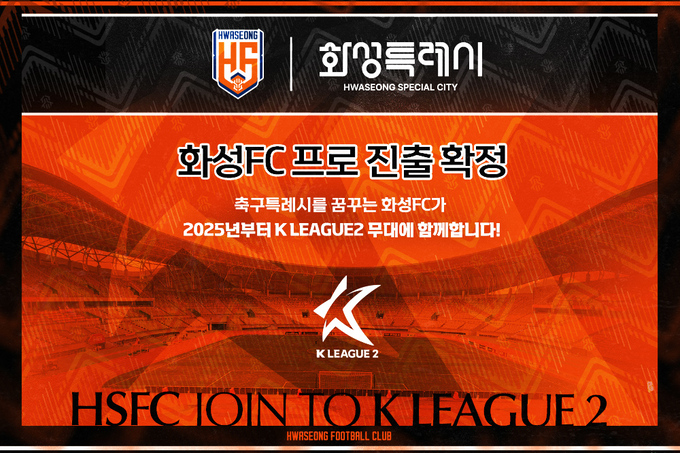화성은 2023년부터 본격적인 프로화를 추진했다. 지난해 11월29일 오후 서울 서대문구 홍은동 스위스그랜드호텔에서 열린 한국프로축구연맹 제5차 이사회에서 화성의 K리그2 가입 안건이 승인됐다. 13일 축구회관 2층 다목적회의실에서 열린 2025 정기대의원총회에서 K리그2 진출이 최종 확정됐다.