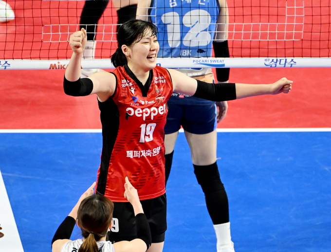 리그 반환점을 돌며 상황이 변했다. 중앙의 한 축을 맡던 하혜진이 발목 부상을 입자 장소연 감독이 염어르헝 카드를 꺼내들기 시작했다. 지난 9일 IBK기업은행과의 4라운드에서 생애 첫 풀타임 경기를 치렀다. 5세트 혈투 끝 승리까지 내내 코트를 지켰다. 블로킹도 3개를 건지며 ‘건강한’ 염어르헝의 모습을 드디어 보여줬다. 이후 꾸준히 선발 멤버로 코트를 밟는다.