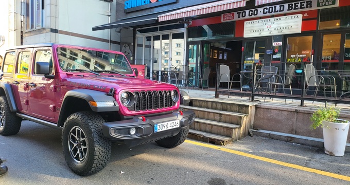 지프 랭글러는 일상마저도 특별한 여행으로 만든다는 점이 매력이다. 여기에 강렬한 핑크 색상이 돋보이는 ‘뉴 랭글러 투스카데로 리미티드 에디션’은 도로의 주목을 한몸에 받는다.