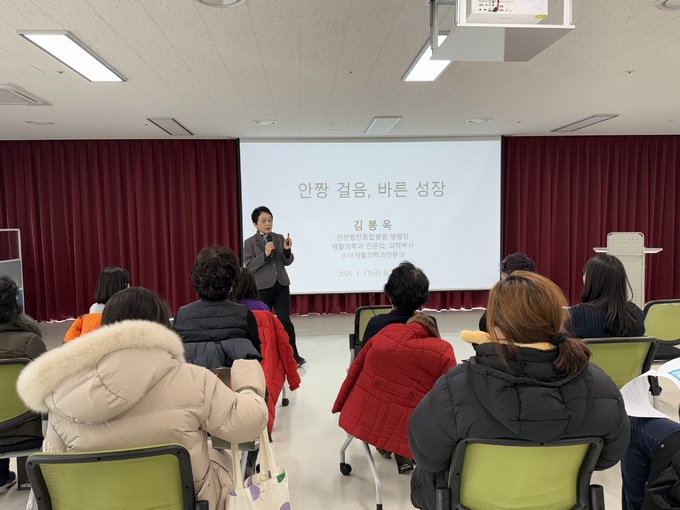 서창건강생활지원센터가 주관한 이번 건강강좌는 ‘안짱걸음, 바른성장’ 이라는 주제로 열렸다. 김 병원장은 성장기 어린이의 바른 걸음 방법, 안짱다리의 원인과 교정 방법, 바르게 성장하는 법 등을 강연했다. 또 척추측만증 등 질환별 예방 운동과 치료 방법, 생활 습관 등에 대한 교육과 걷기 실습을 김봉옥 병원장이 직접 선보였다.
