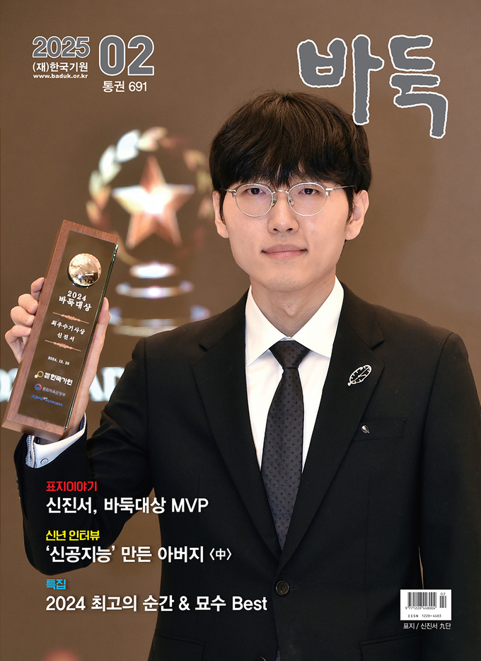 이번 호 표지는 2024년 바둑대상 최우수선수(MVP)를 수상한 신진서 9단이 장식했다. 5년 연속, 통산 여섯 번째 MVP에 선정된 신진서 9단은 인기기사상을 포함해 총 4개 부문에서 수상의 영예를 안았다.