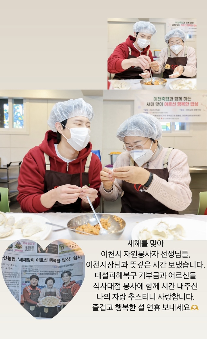 추혁진은 이어 “대설피해복구 기부금과 어르신들 식사대접 봉사에 함께 시간 내주신 나의 자랑 추스티니(팬클럽명) 사랑합니다. 즐겁고 행복한 설 연휴 보내세요”라는 글을 통해 팬덤에게 감사 인사도 잊지 않았다.