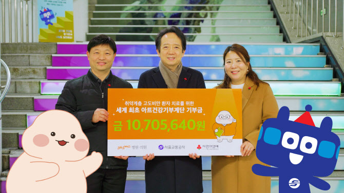 365mc와 서울교통공사는 최근 서울 지하철 7호선 강남구청역에 설치한 '아트건강기부계단'으로 조성된 기부금을 서울 사회복지공동모금회에 전달했다.