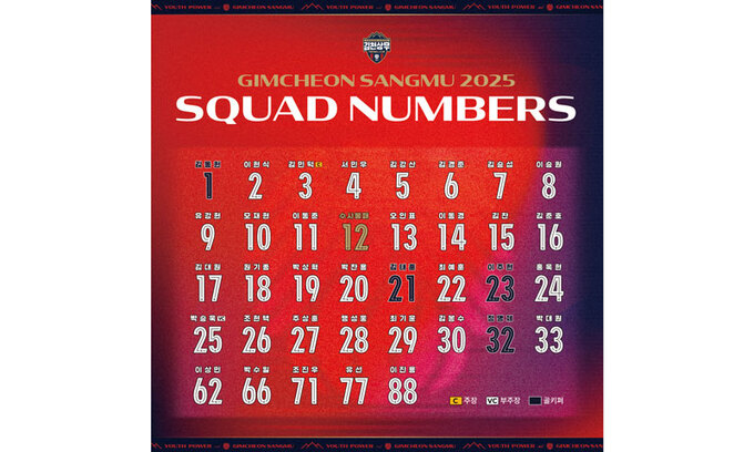 프로축구 K리그1 김천상무가 2025시즌 프로선수단 배번을 공개했다.