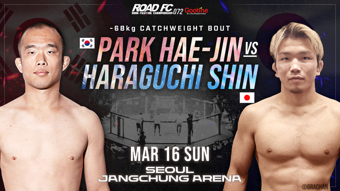 국내 종합격투기(MMA) 단체 로드FC의 페더급 챔피언 박해진이 내달 16일 서울 장충체육관에서 개최되는 ‘굽네 ROAD FC 072’서 하라구치 신과 맞붙는다. 둘의 경기는 68㎏ 계약체중 조건으로 열린다.