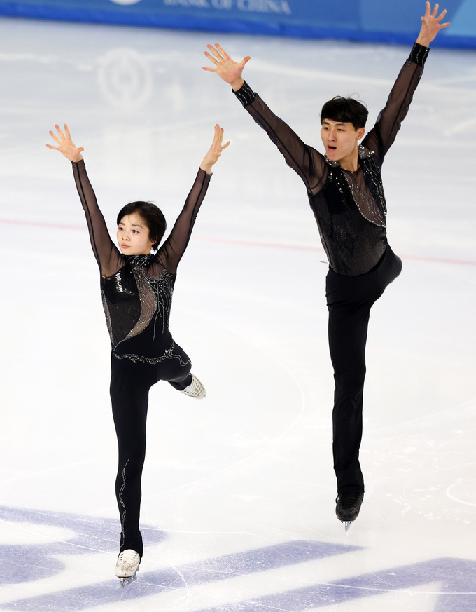모습을 드러낼 준비를 마쳤다. 2025 하얼빈 동계아시안게임에 나선 북한 피겨스케이팅 페어의 렴대옥-한금철과 남자 싱글의 로영명이 경기 하루 전 훈련에 열중했다. 렴대옥-한금철 조는 10일 오전 9시부터 9시30분까지 중국 하얼빈 헤이룽장 빙상훈련센터 다목적홀에서 공식 훈련을 소화했다.
