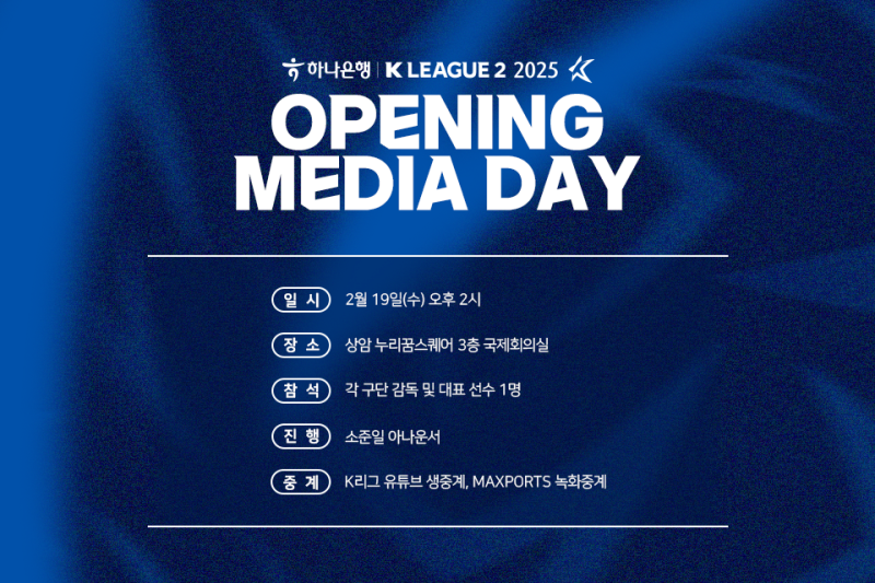 한편 개막 미디어데이는 19일 오후 2시부터 K리그 공식 유튜브 채널과 MAXPORTS에서 생중계되며, skySports에서 녹화중계된다.