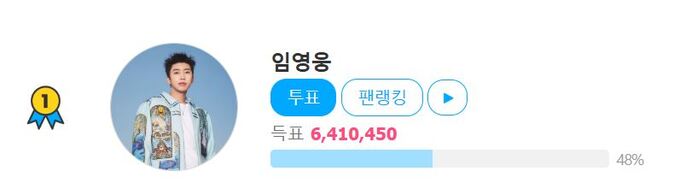 임영웅은 지난 10일부터 17일까지 진행된 아이돌 팬 커뮤니티인 팬앤스타의 2월 둘째 주 솔로 랭킹 투표에서 3330만 332표를 얻으며 1위에 올랐다. 2위는 865만 8236표를 얻은 영탁이 차지했고 방탄소년단 뷔가 720만 8959표로 3위를 기록했다.